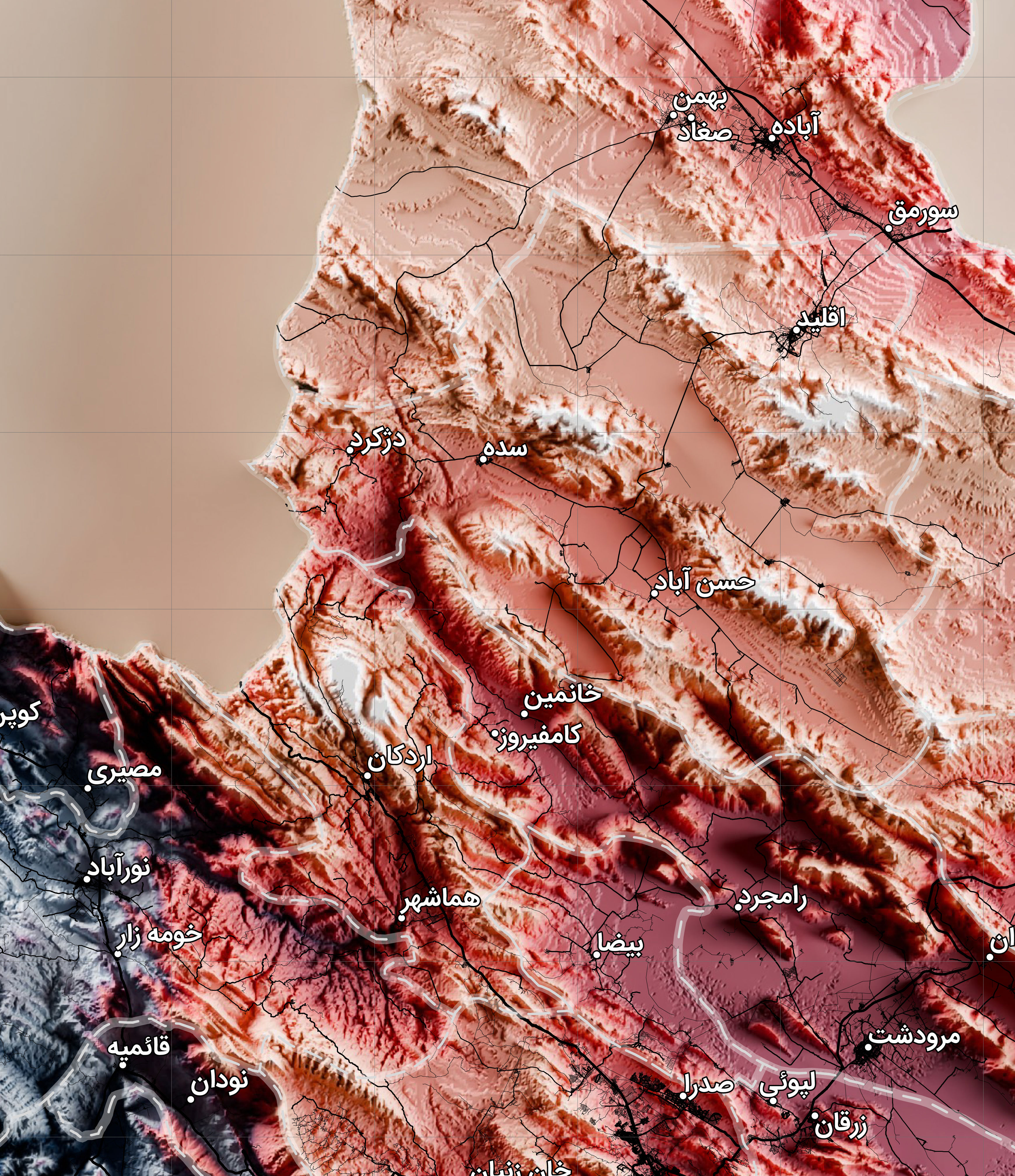 نقشه سه بعدی ارتفاعات استان فارس با کیفیت بالا