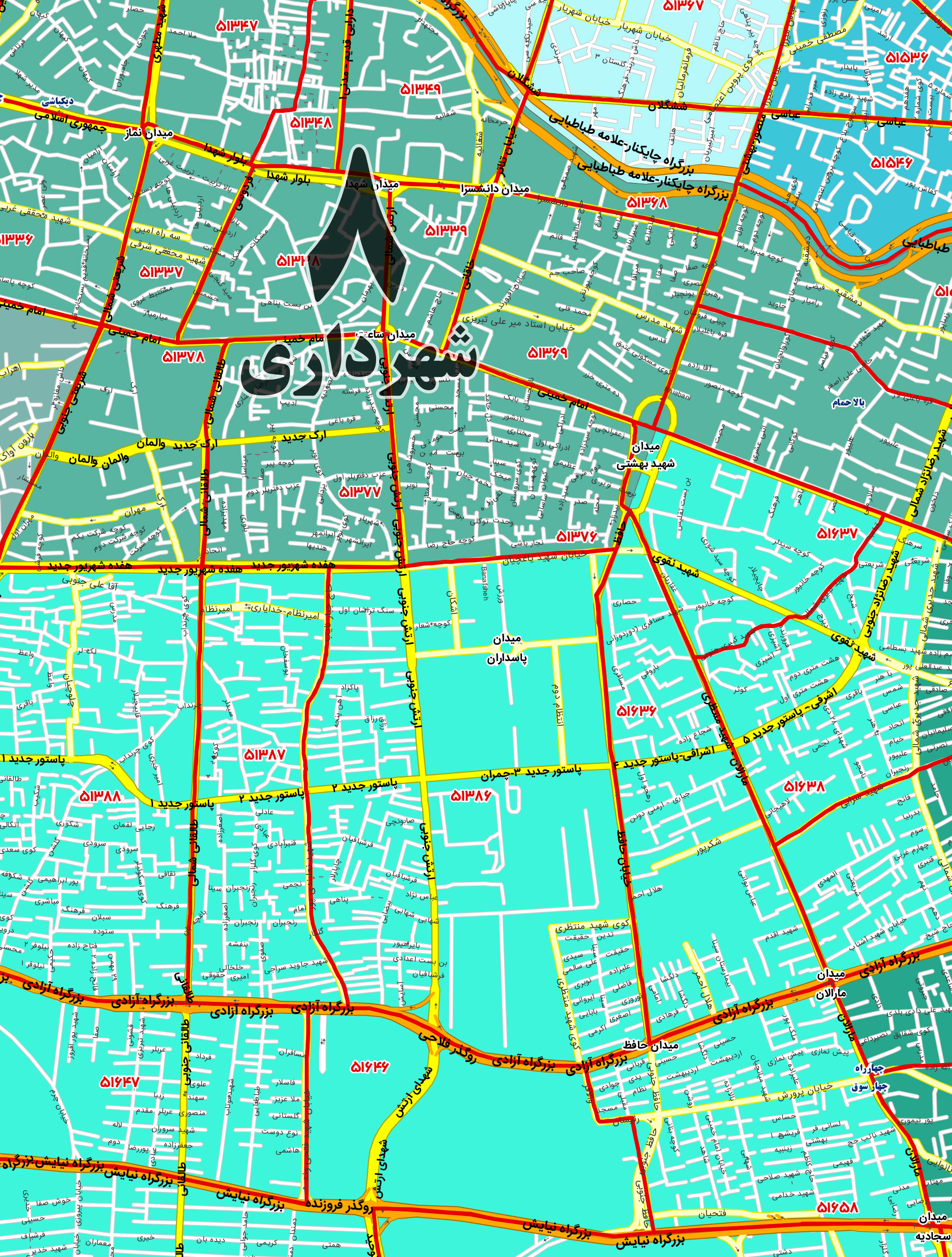 نقشه وکتور pdf کد پستی 5 رقمی های تبریز برای چاپ