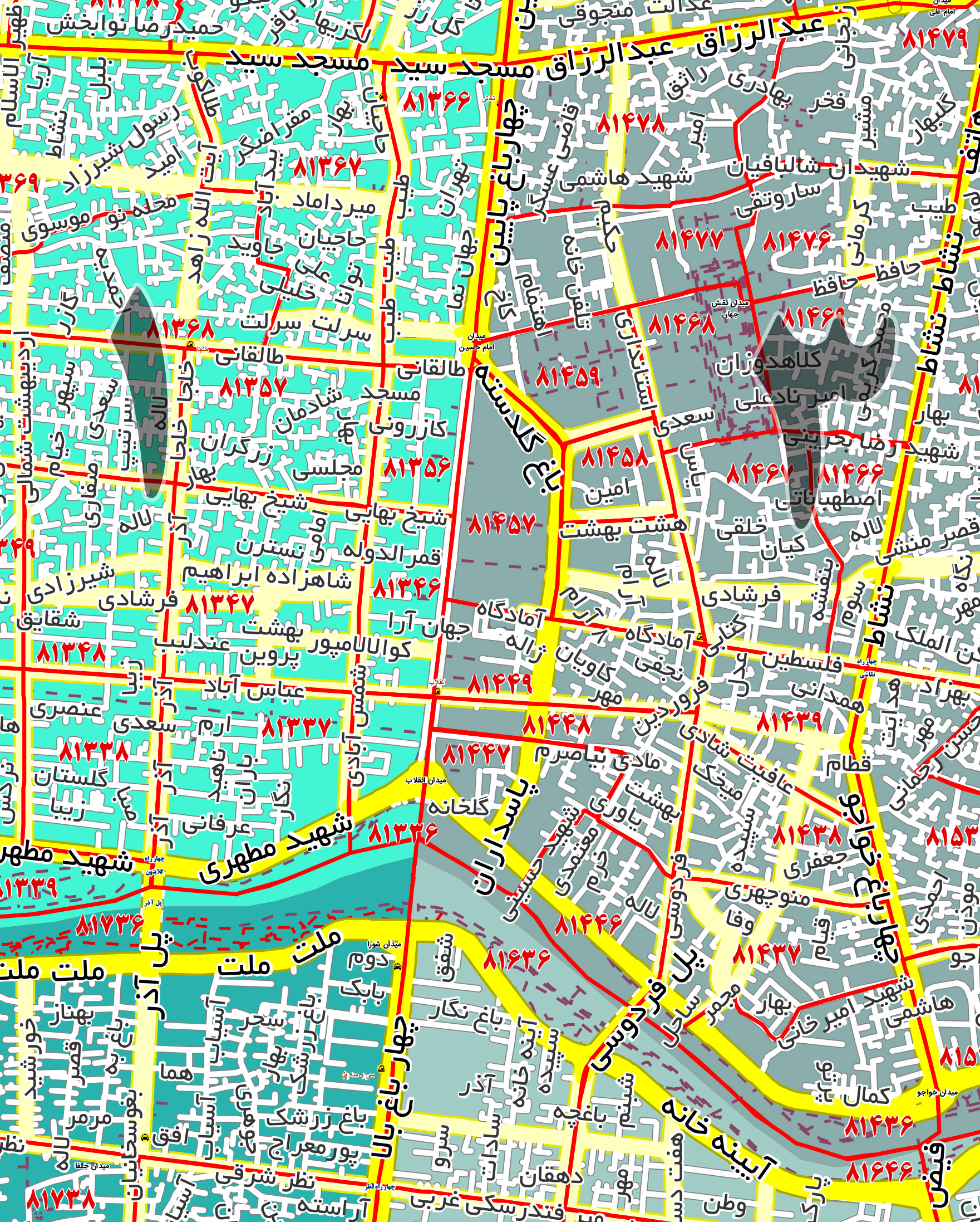 نقشه وکتور pdf کد پستی 5 رقمی های اصفهان برای چاپ